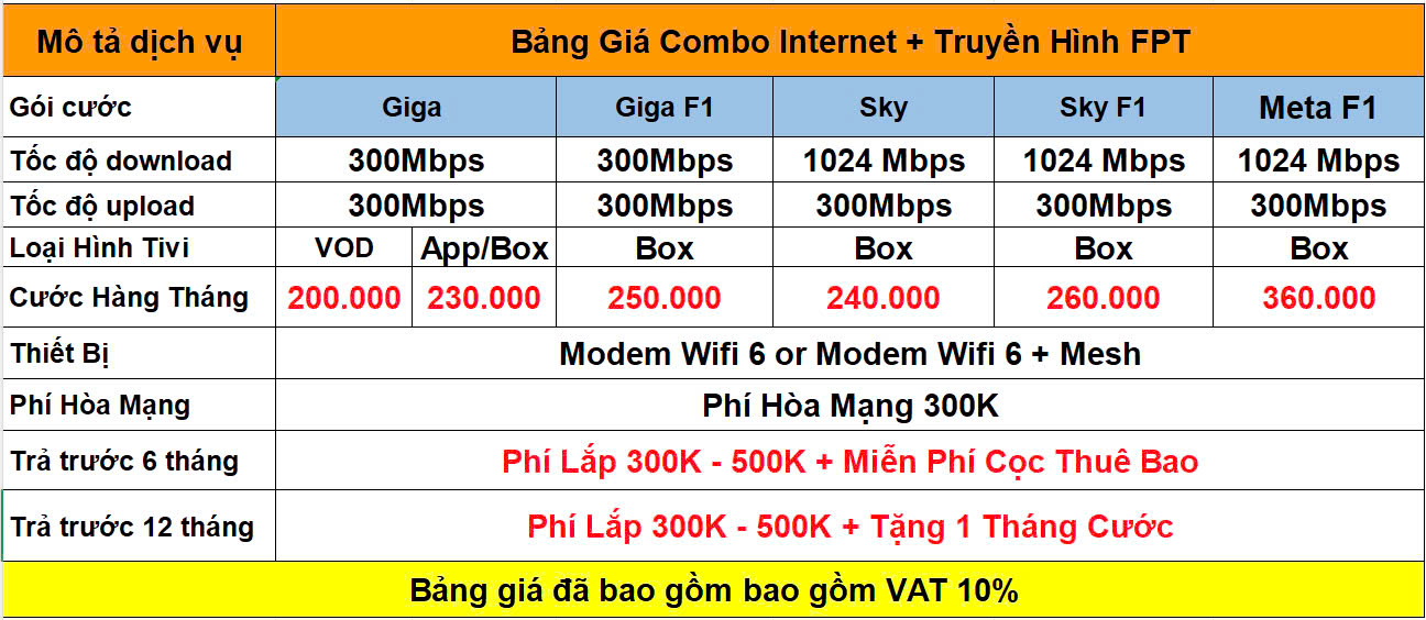 – Gói combo cơ bản: Internet + Truyền Hình 4K Ultra HD chỉ từ 210.000đ/Tháng